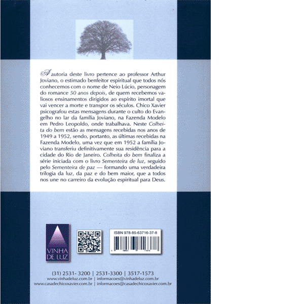 A autoria deste livro ” Colheita do Bem ” pertence ao professor Arthur Joviano, o estimado benfeitor espiritual que todos nós conhecemos com o nome de Neio Lúcio, personagem do romance 50 anos depois, de quem recebemos valiosos ensinamentos dirigidos ao espírito imortal que vai vencer a morte e transpor os séculos.