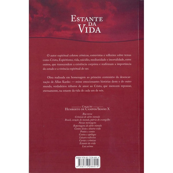 O autor espiritual do livro Estante da Vida, coletou crônicas, entrevistas e reflexões sobre temas como Cristo, Espiritismo, vida, suicídio, mediunidade e imortalidade, entre outros, que transcendem a existência corpórea e reafirmam a importância do estudo e da vivência espiritual do ser.