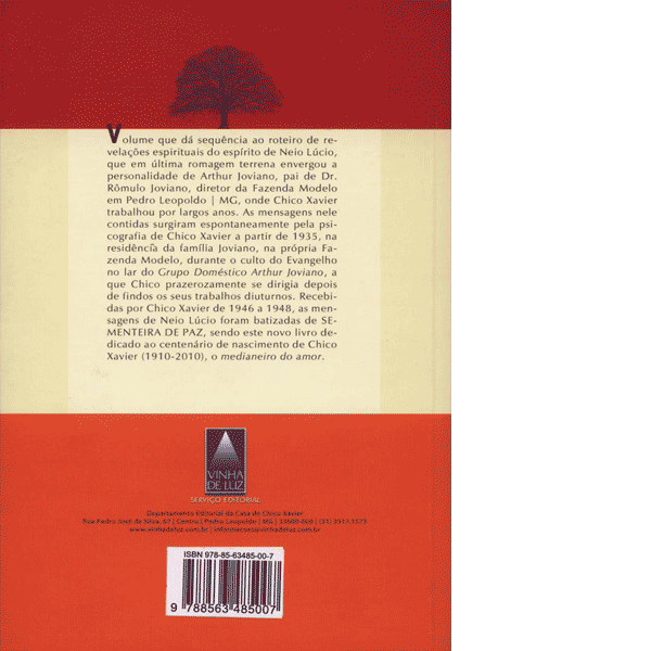 Sementeira de paz volume que dá sequência ao roteiro de revelações espirituais do espírito de Neio Lúcio, que em última romagem terrena envergou a personalidade de Arthur Joviano, pai de Dr. Rômulo Joviano, diretor da Fazenda Modelo em Pedro Leopoldo | MG, onde Chico Xavier trabalhou por largos anos.